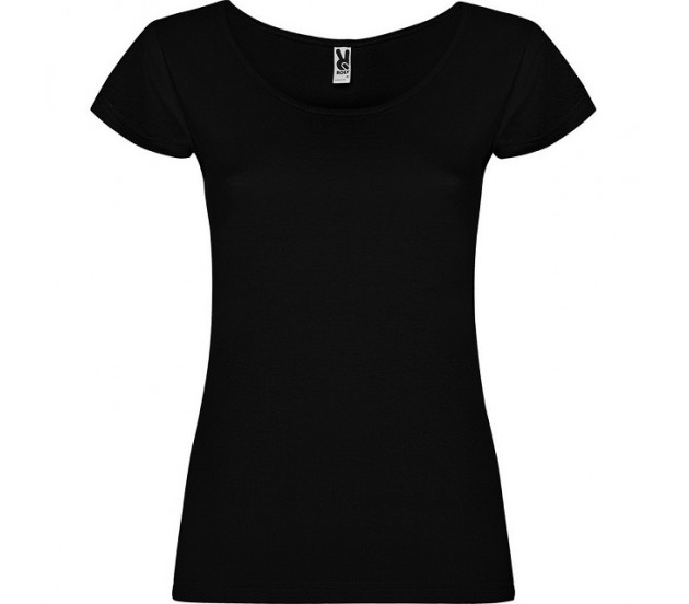 Tricou cambrat, cu maneca scurta și decolteu rotund si pronuntat, cu garnitura lata și rasucita. Cusaturi laterale.